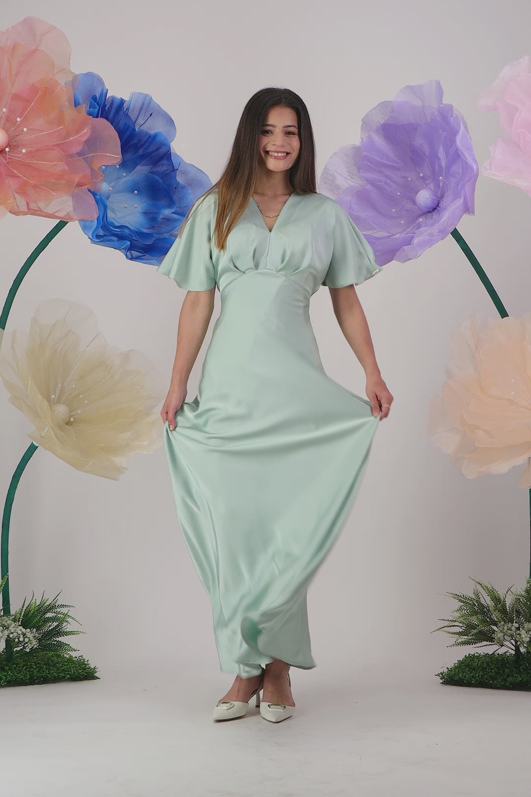 Qailah is your go-to effortless elegance - dreamy drape, flutter sleeves, and a tie-back waist that shapes without restricting. A serene piece inspired by garden light and soft spring air.